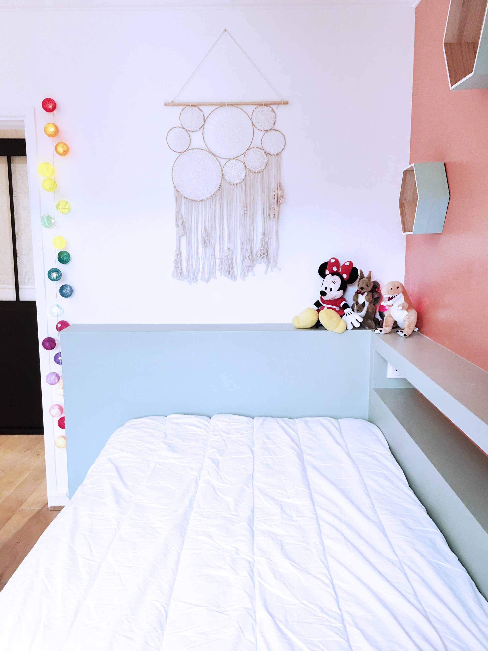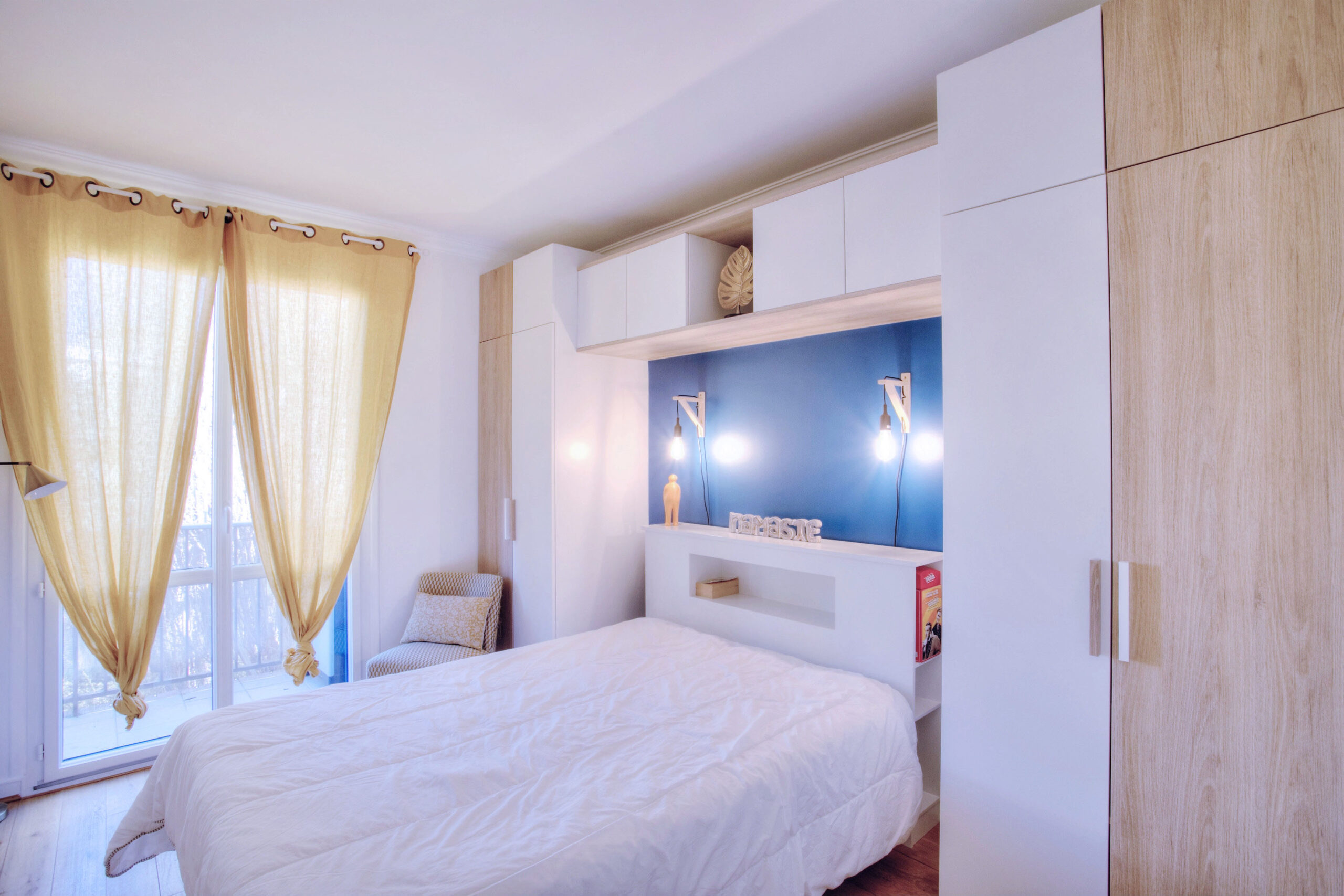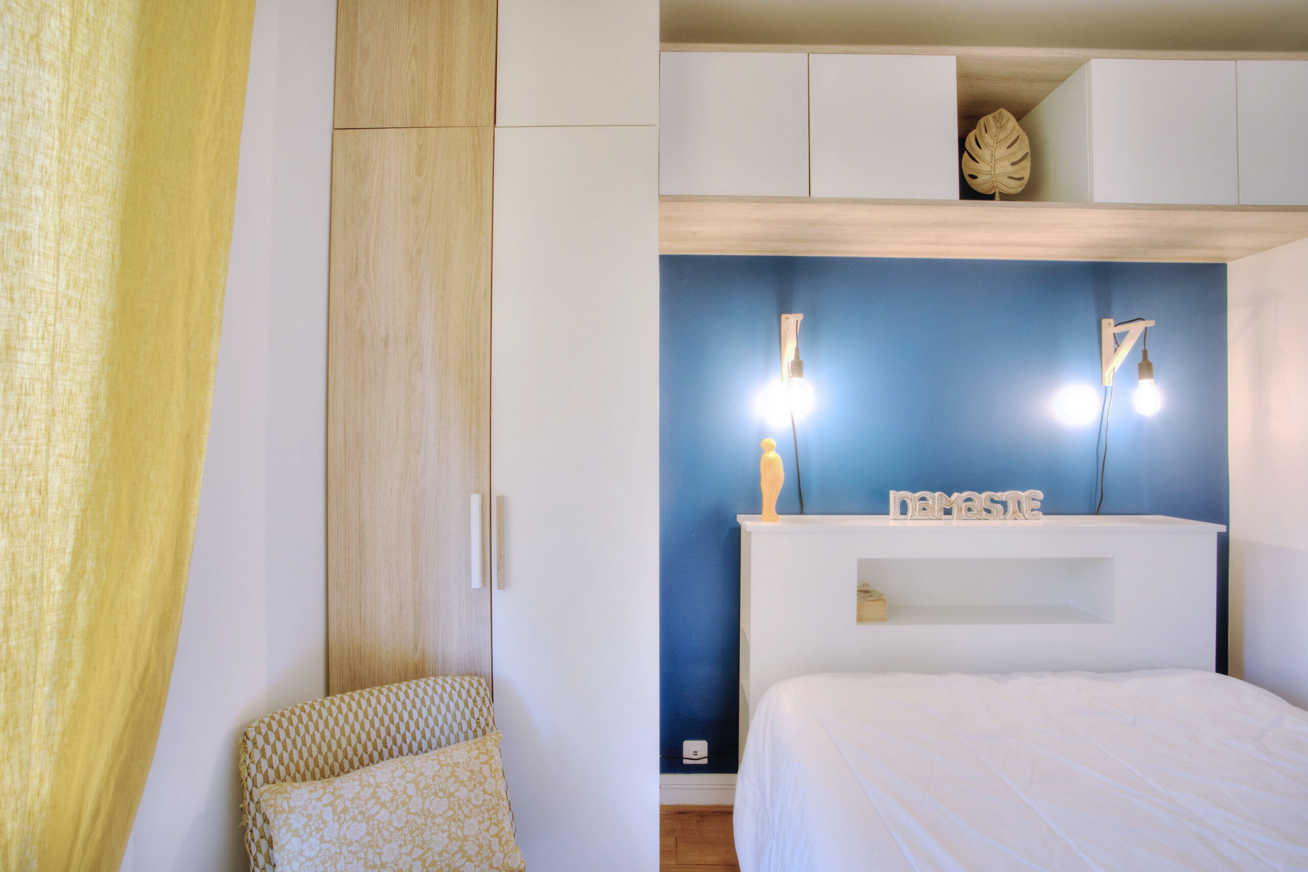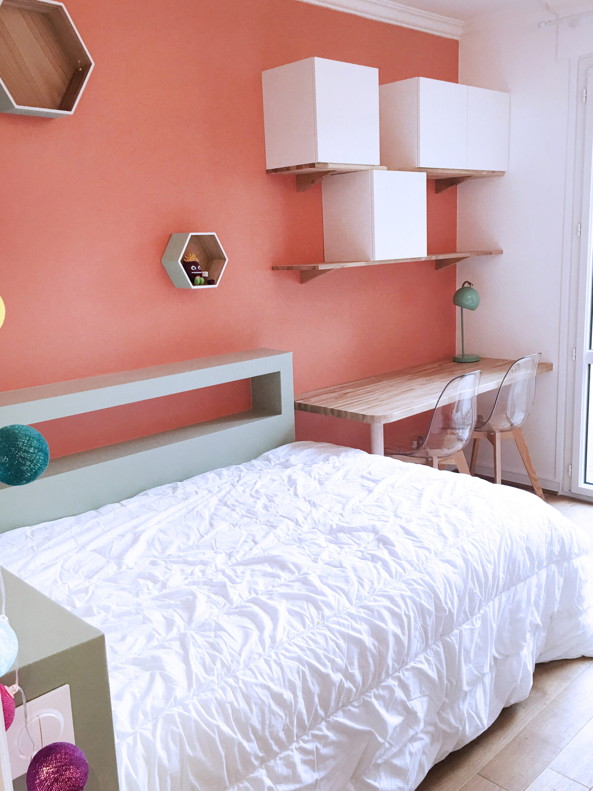 Ce coin nuit regroupe trois chambres aux ambiances distinctes, chacune conçue selon les besoins et la personnalité de ses occupants. Le couloir, devenu lumineux, assure la transition entre les différentes pièces. L’ancien dressing a laissé place à un bureau ouvert sur le couloir et très fonctionnel. Un coin nuit qui conjugue harmonie et individualité.