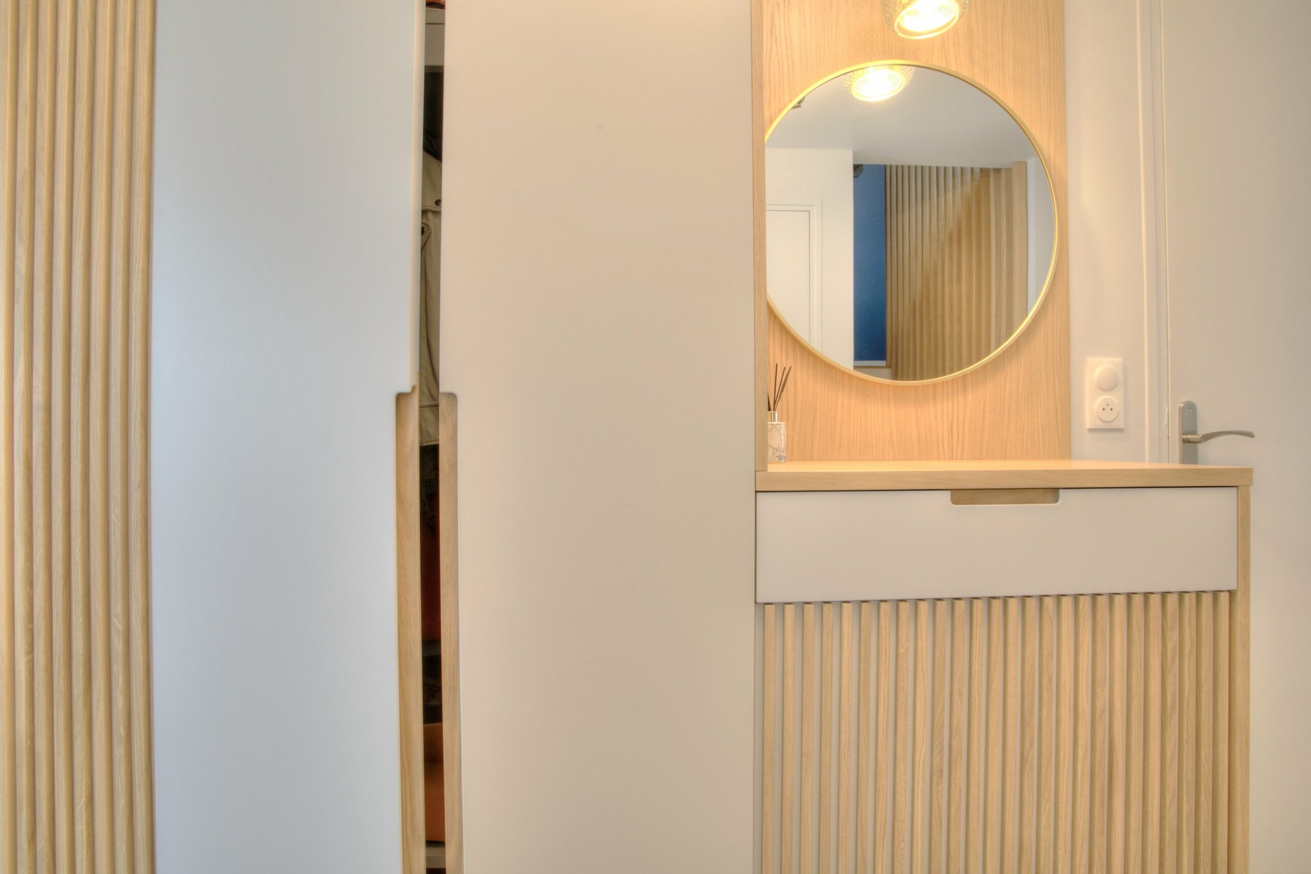 L’espace de cette entrée a été entièrement repensé sur-mesure.